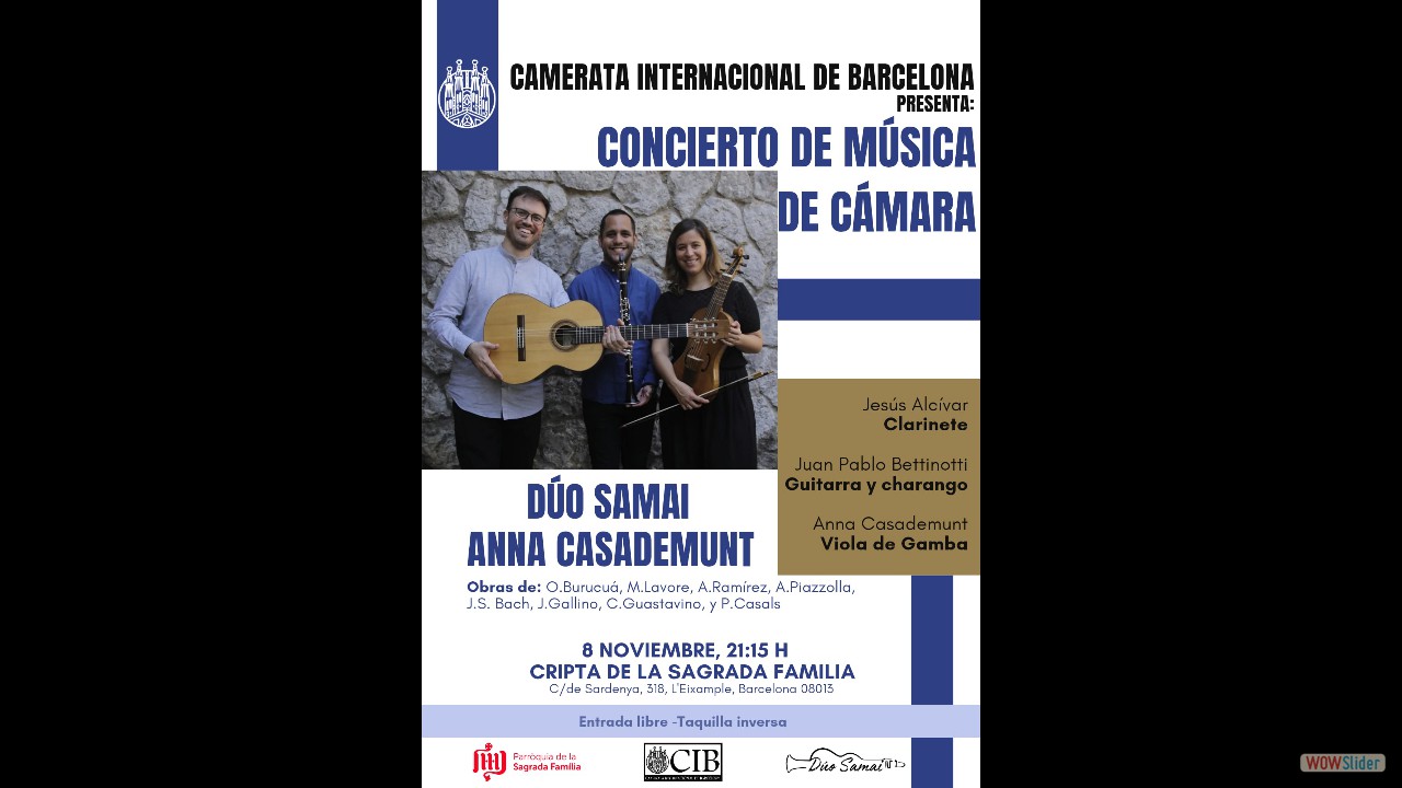A wonderful concert by the SAMAI Duo with Anna Casademunt in the crypt of the Sagrada Familia (Barcelona)! Many thanks to my dear friend Jesús Alcivar the invitation and to the Camerata Internacional de BCN for the organization.