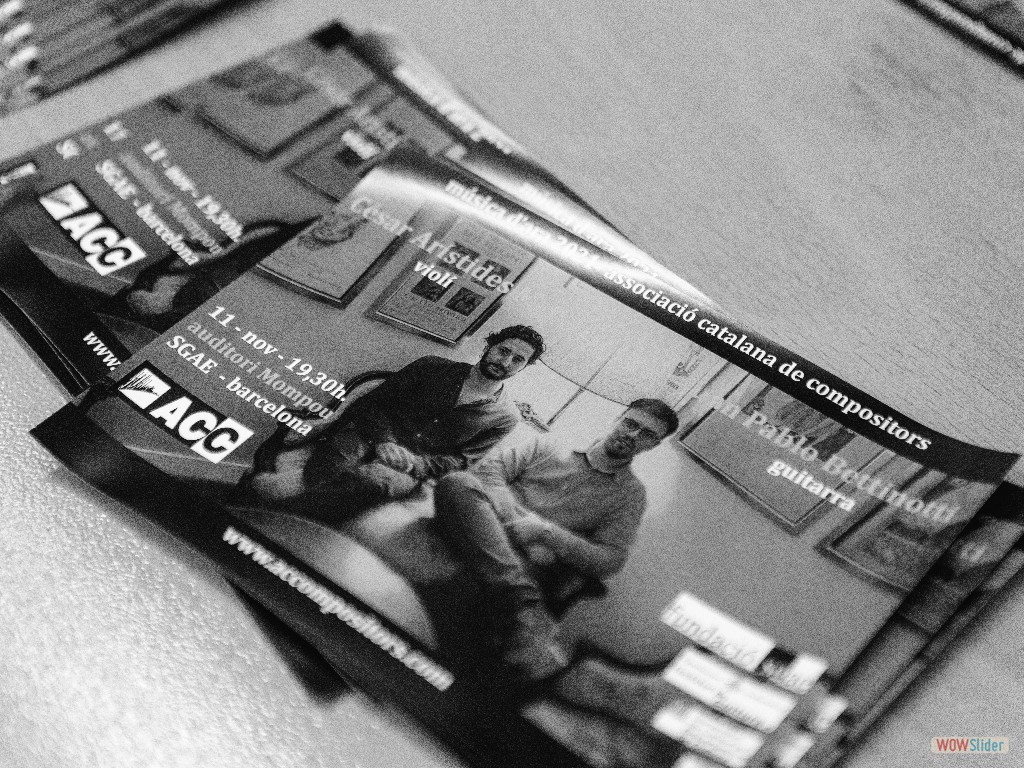 *Some images of last the concert the Catalan Association of Composers in the auditorium of the SGAE together with Cesar Aristides Mateos (violin) !! Barcelona, November 11th. The composers: Eduardo Diago, Jordi Codina, Gloria Villanueva, Luis M. Bosch and Domènec González de la Rubia. Thank you!!